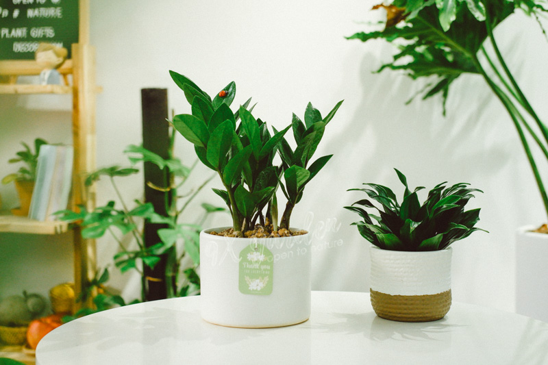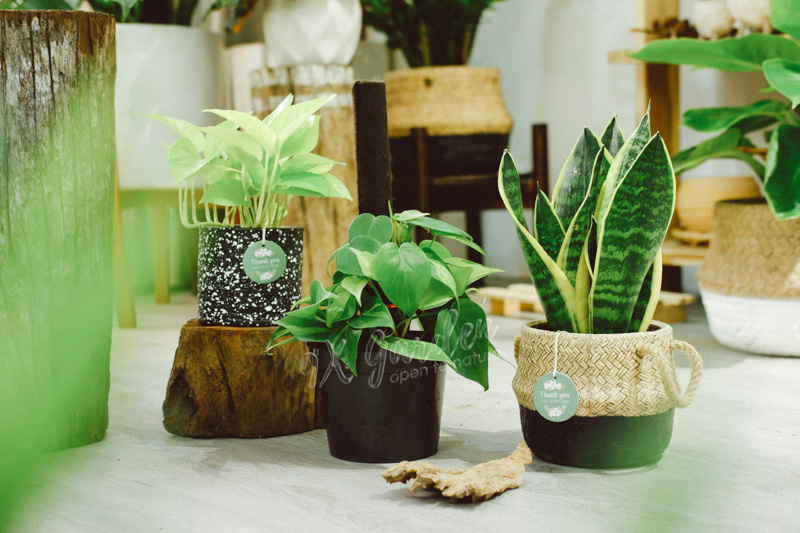 Là tất cả những cây có màu xanh thuần như Mini Monstera, Kim Ngân, Trường Sinh, Đế Vương Xanh, Cau Tiểu Trâm,…